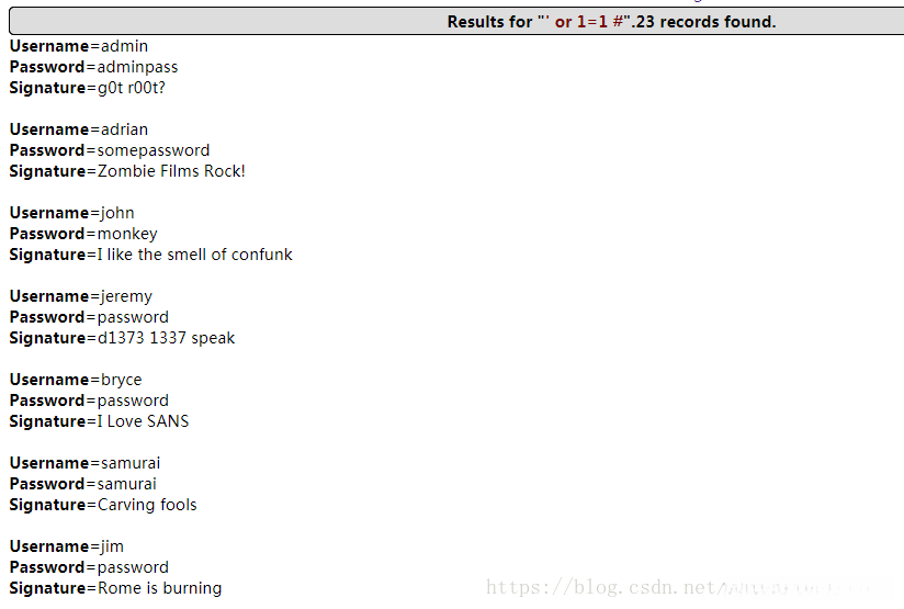 在用户名字段中插入" or 1=1 #"并对其执行注解处理