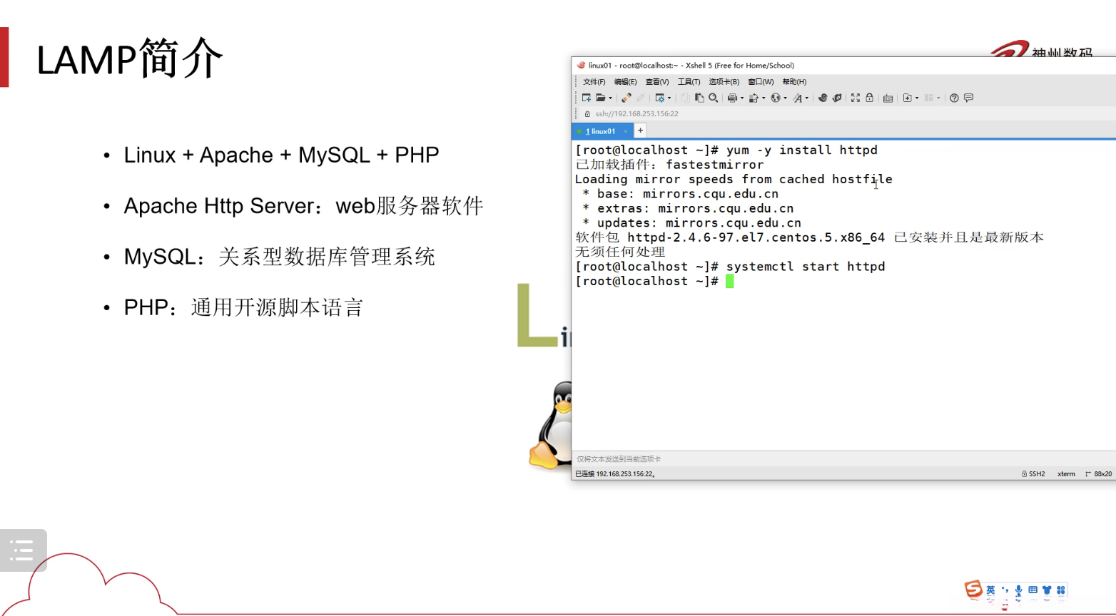 - 使用 yum 安装 Apache 服务器以支持网页服务