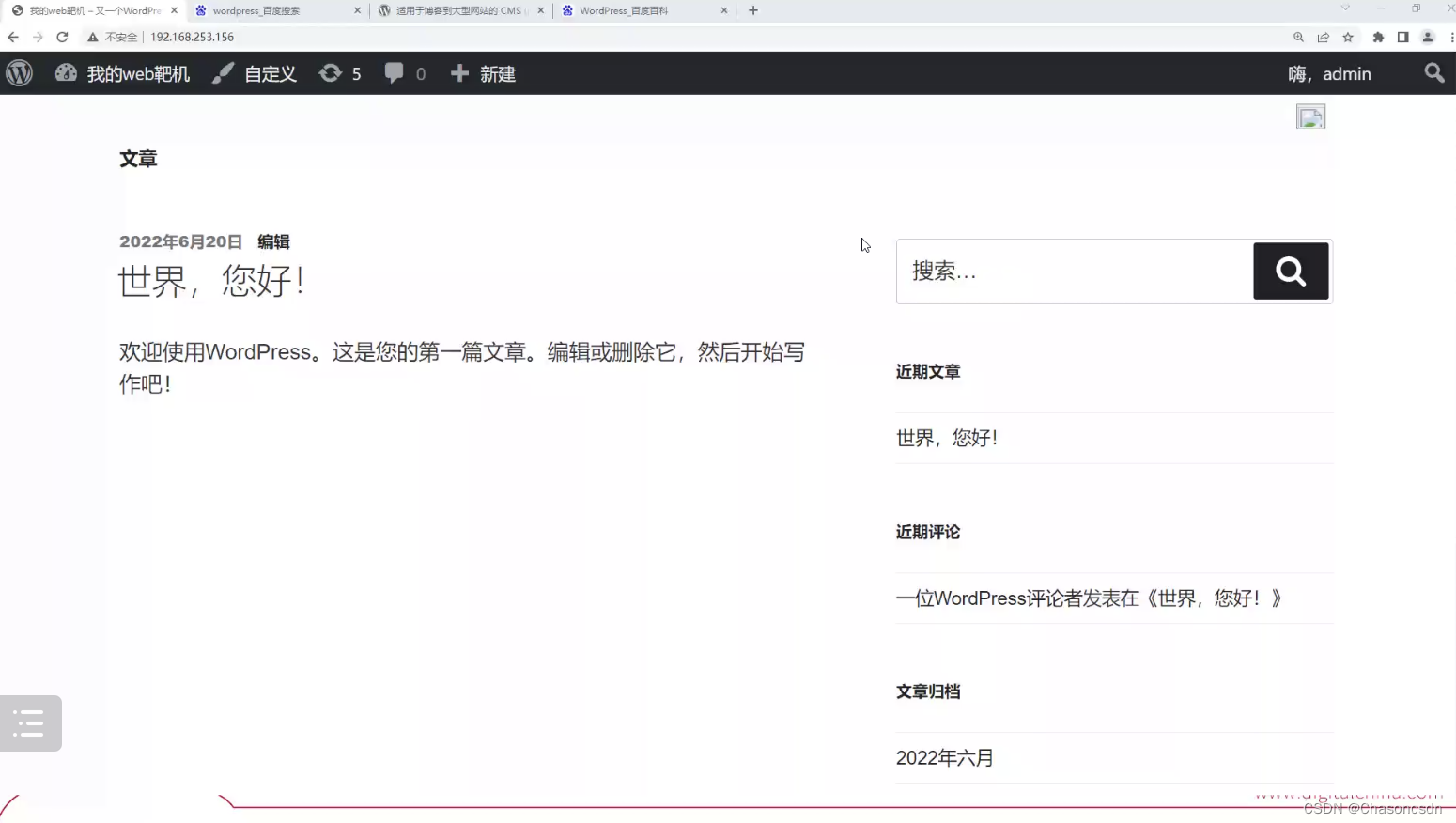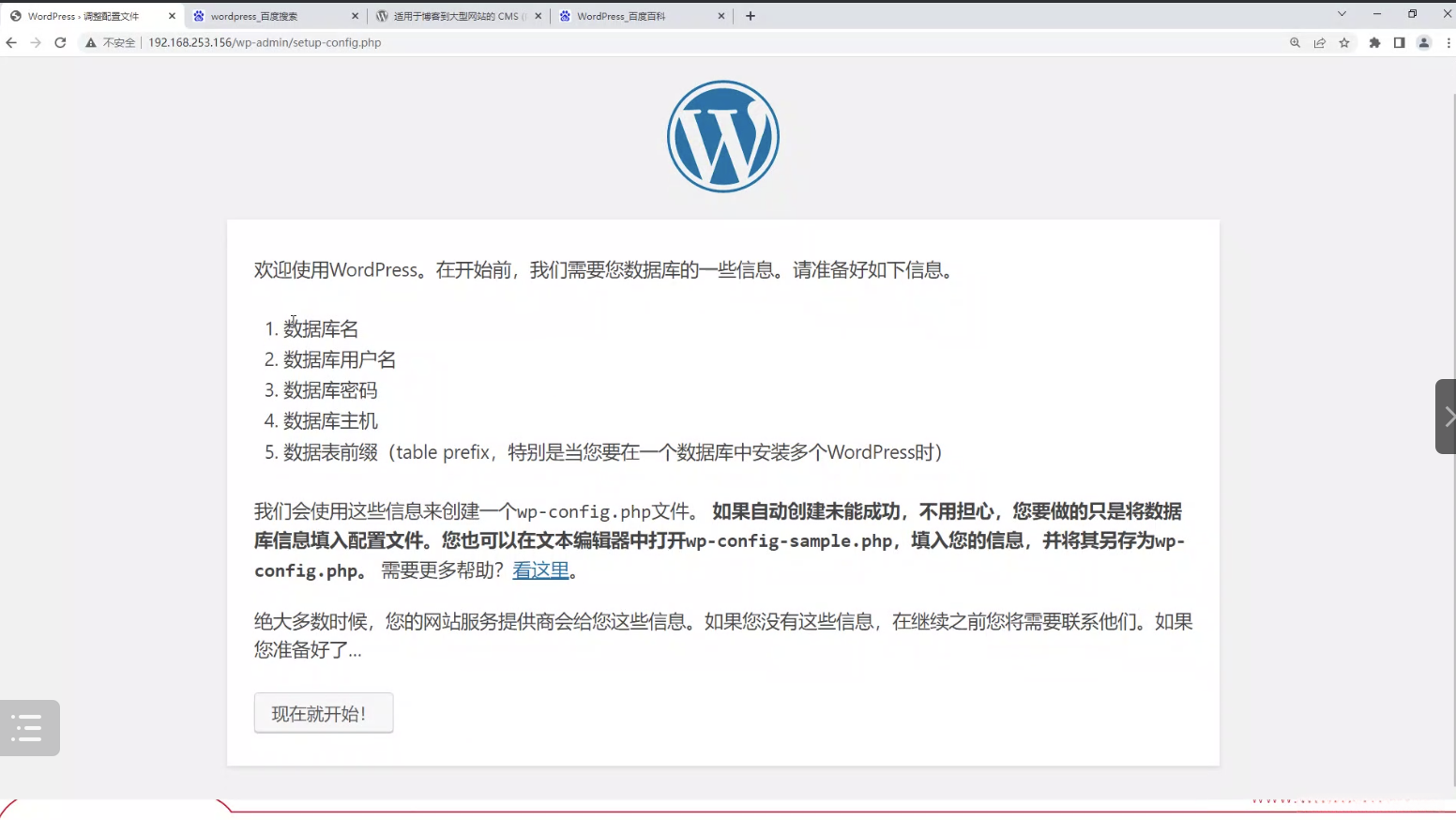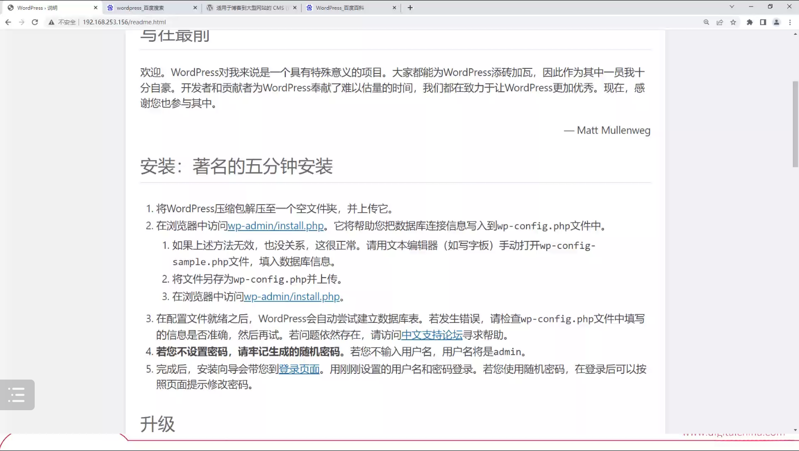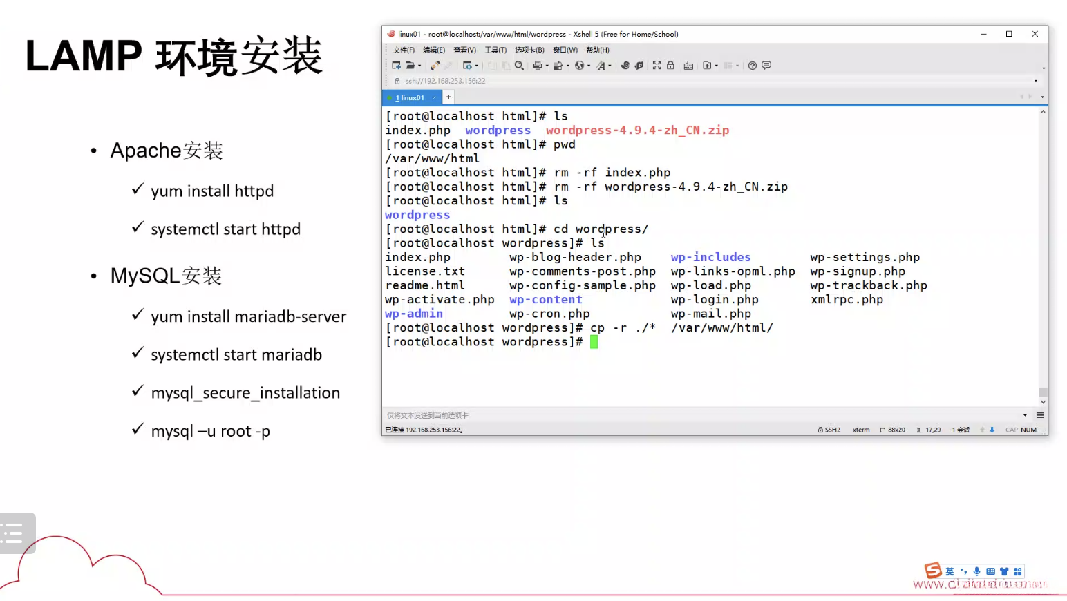- 先用 yum 安装 unzip 包然后解压 wordpress.zip 文件完成 WordPress 的安装过程
