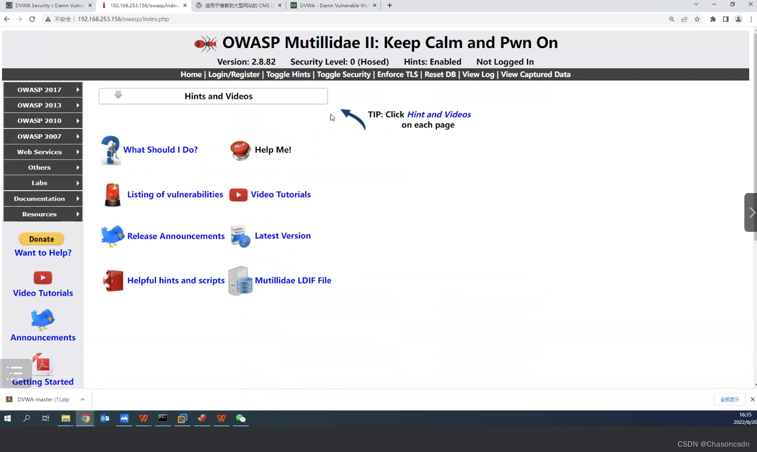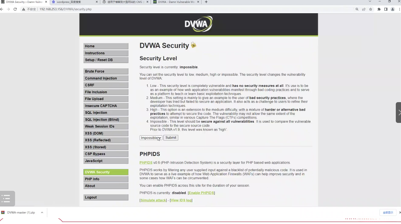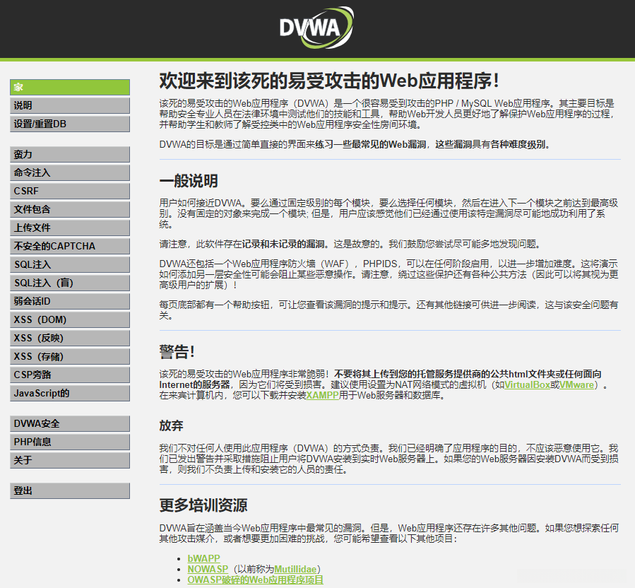 - 下载链接:DVWA - Damn Vulnerable Web Application
