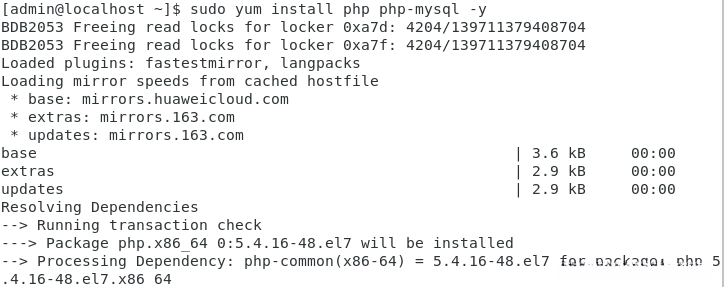 安装 PHP 环境:sudo yum install php php-mysql -y