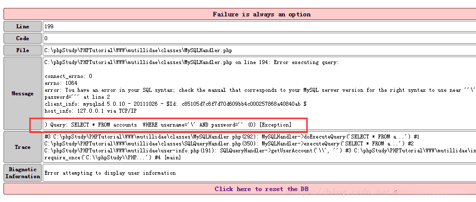 同时,在报错信息中可以找到相关的SQL语句,并采用SQL注入的方式进行操作;其中可以看到这样的一个例子: