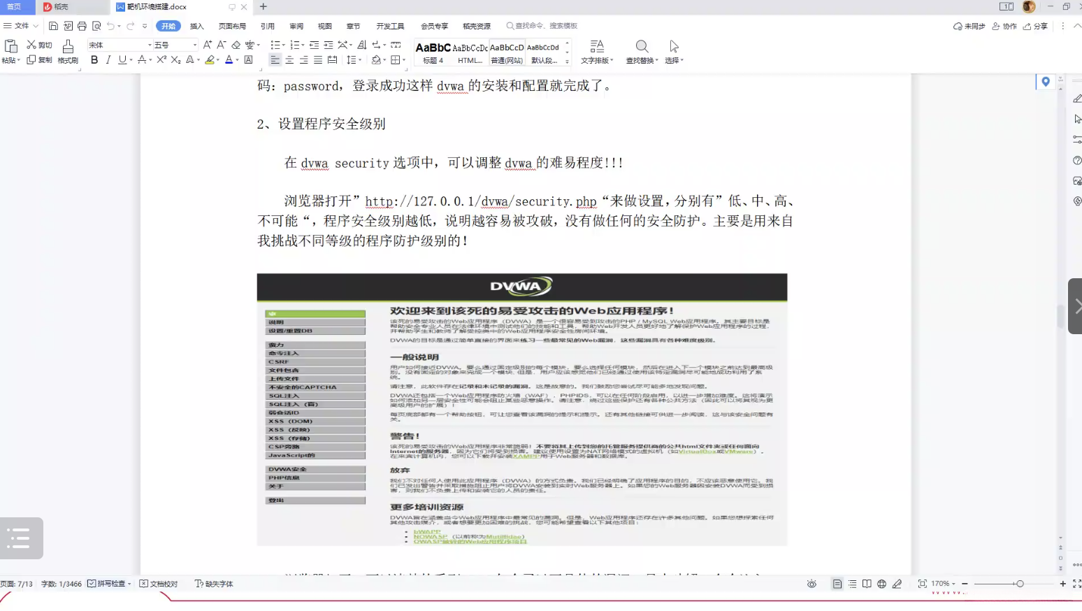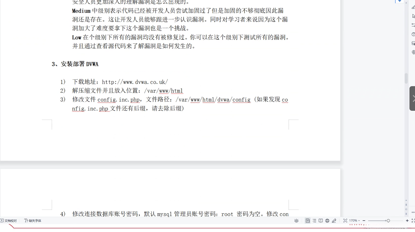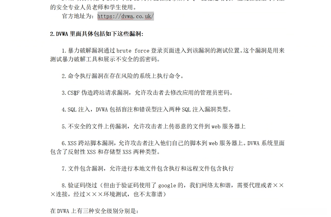 - DVWA 的安装部署过程可以通过相应的管理界面完成配置设置