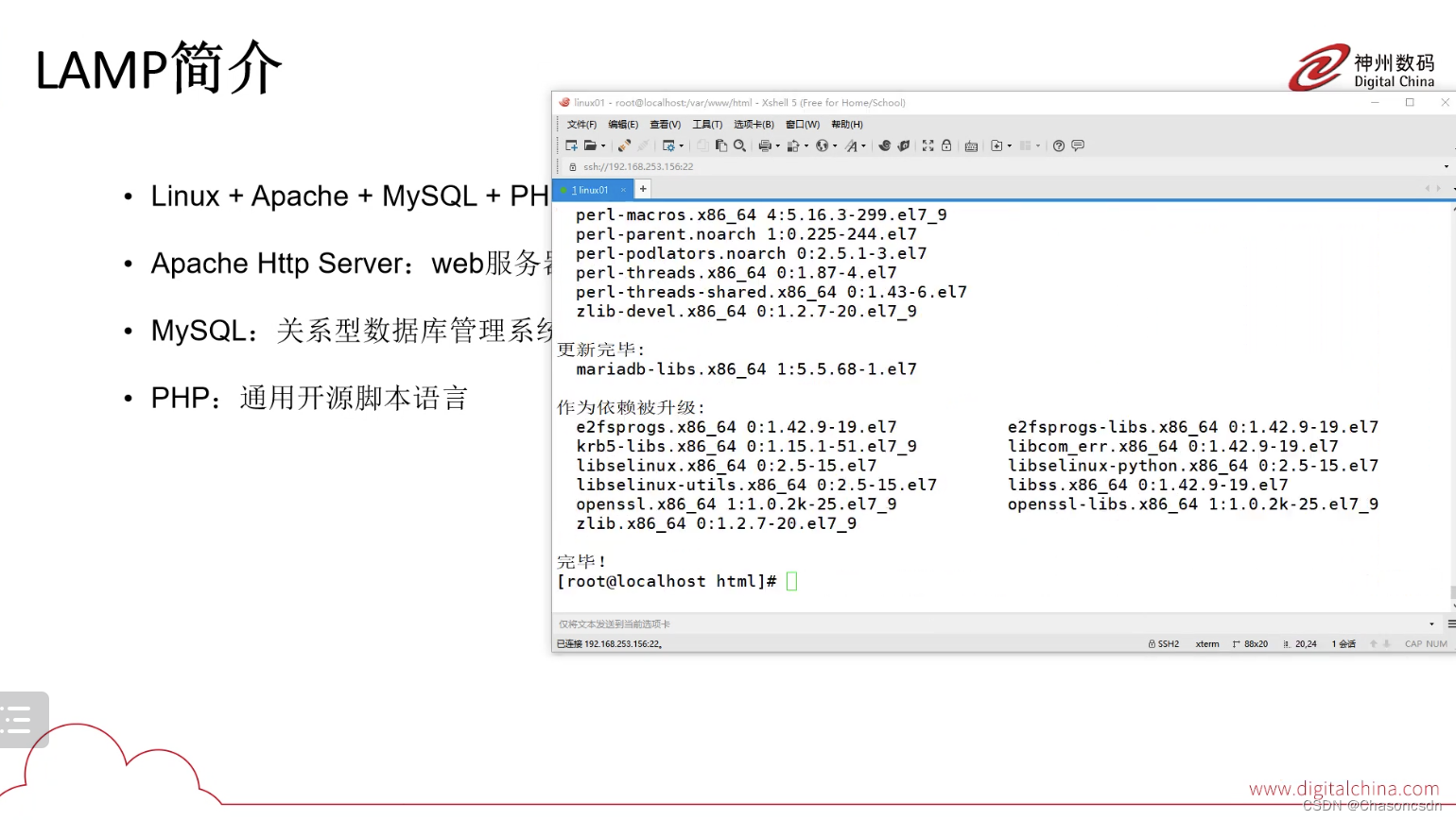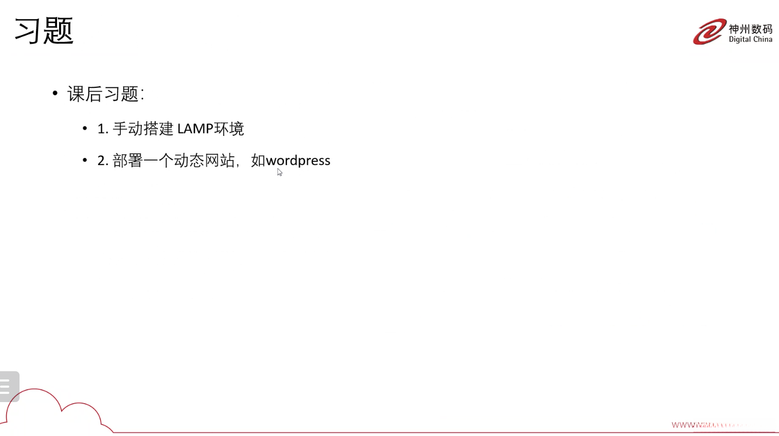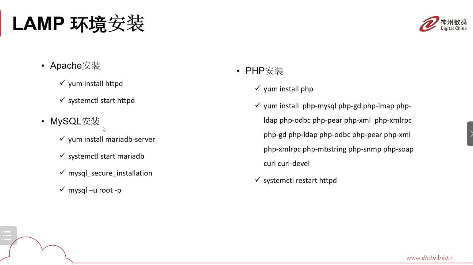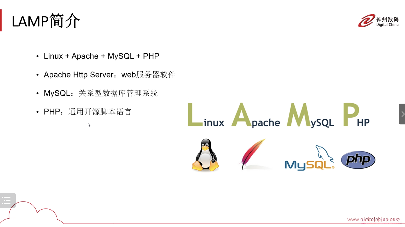 - LAMP 由 Linux、Apache、MySQL 和 PHP 四大组件组成