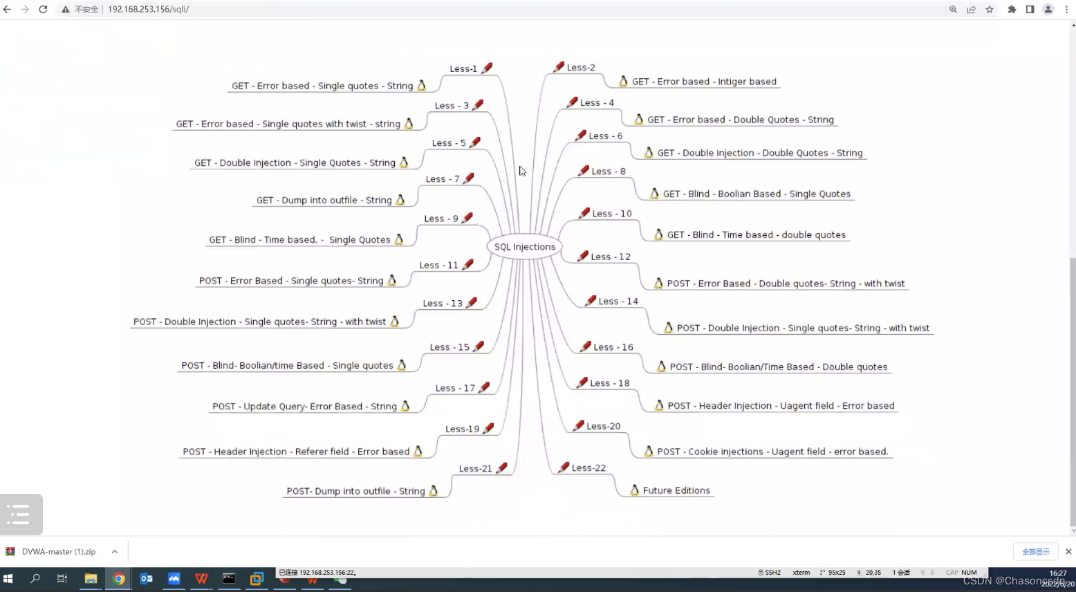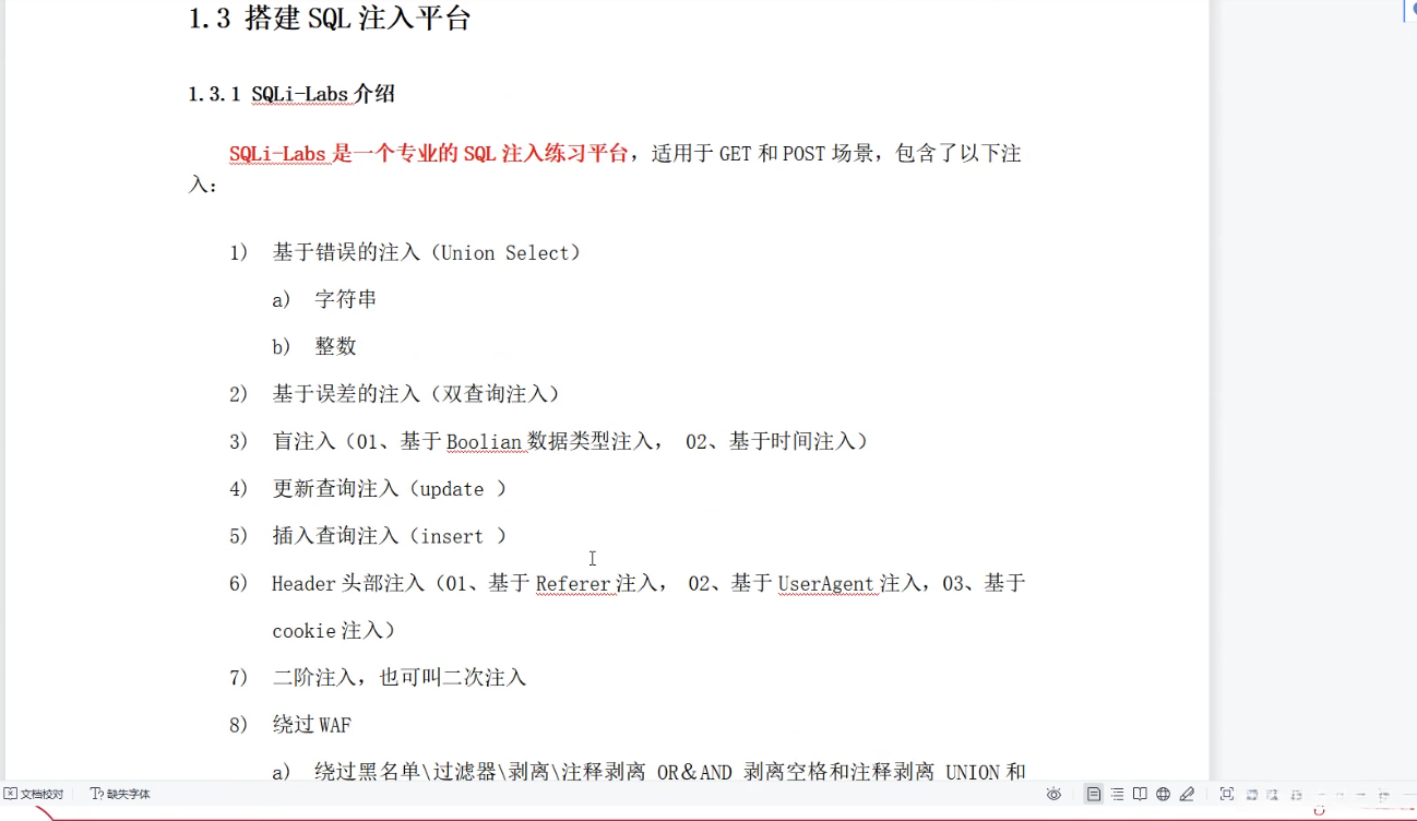 - 具体操作包括下载 sqli-labs-master.zip 包然后解压并按照指导文档逐步完成数据库注入测试平台的搭建过程