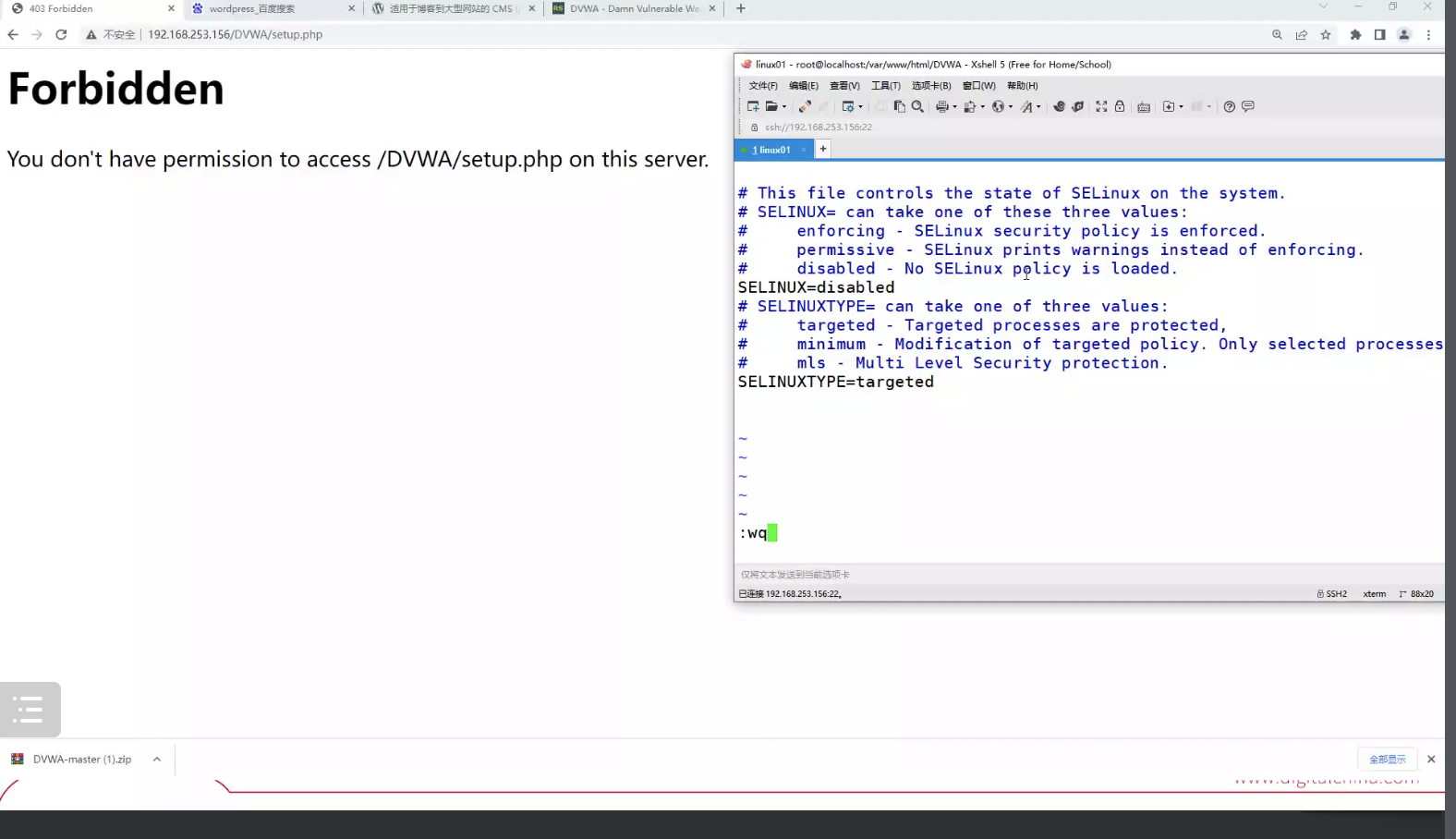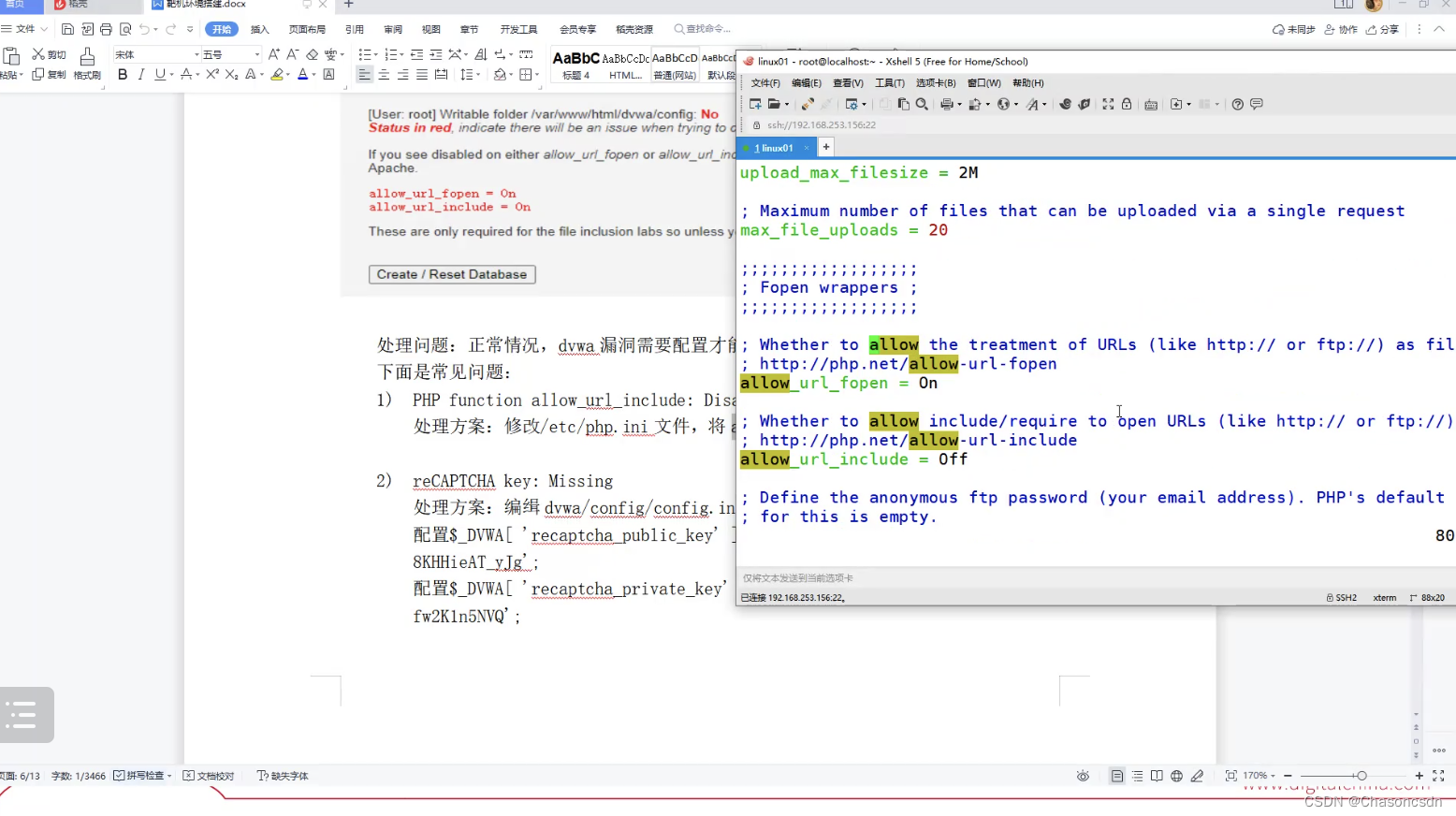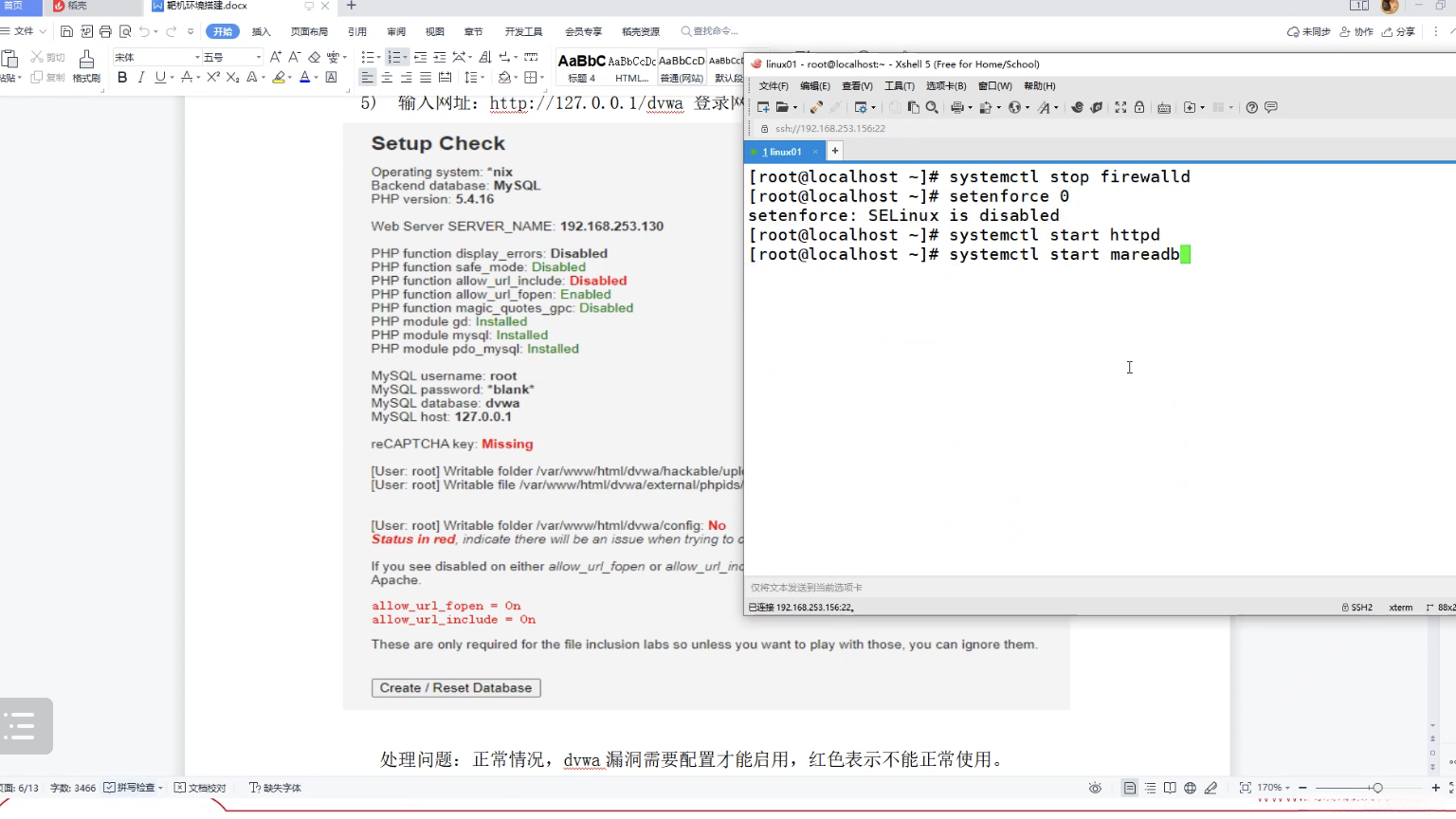 处理问题:正常情况,dvwa漏洞需要配置才能启用,红色表示不能正常使用。