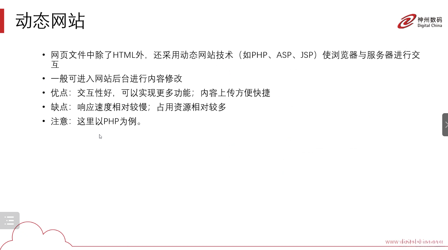 - 静态网站与动态网站的区别主要在于是否支持动态内容生成