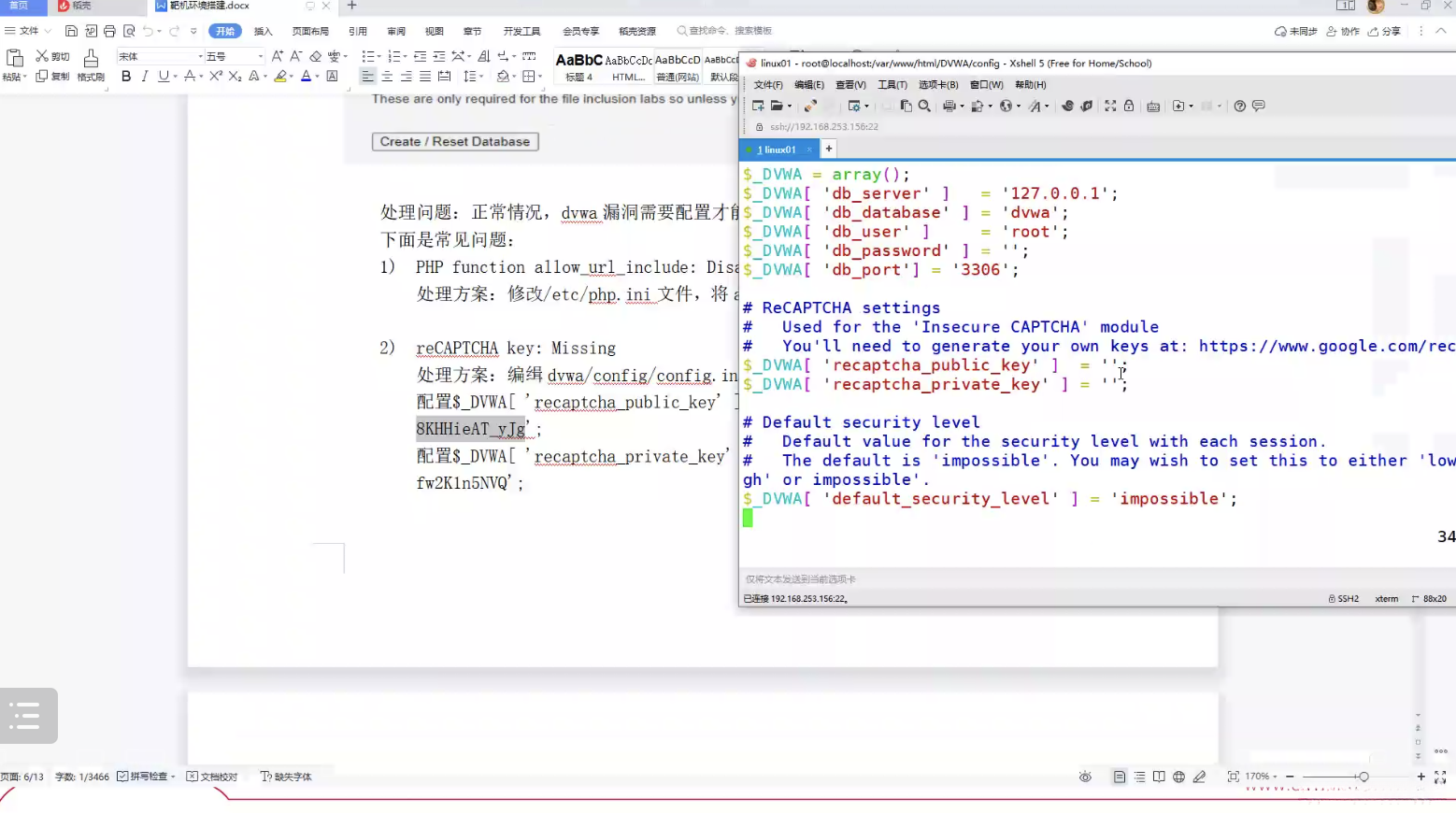 配置$_DVWA[ 'recaptcha_private_key' ] = '6LdK7xITAzzAAL_uw9YXVUOPoIHPZLfw2K1n5NVQ';