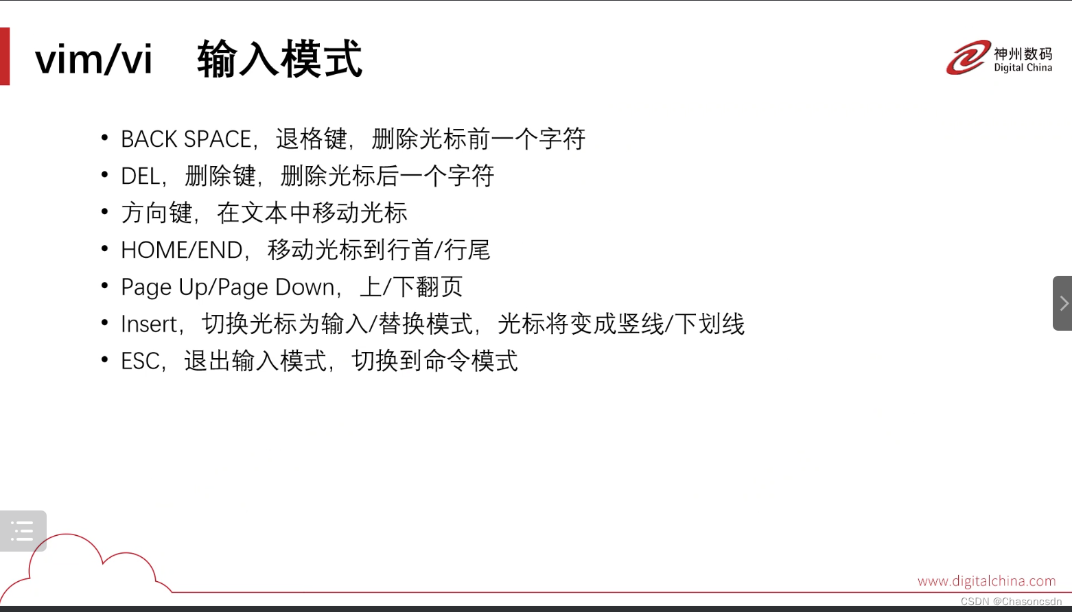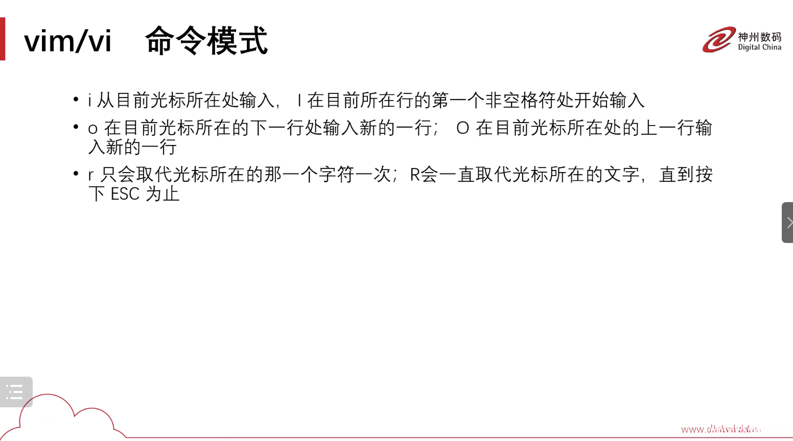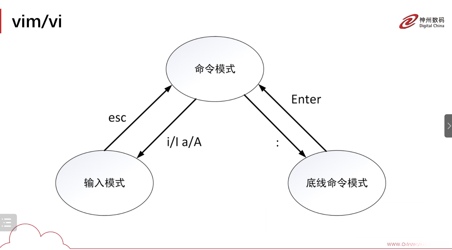 - 在vim及其增强版vi中,默认支持输入模式、命令模式以及下划线命令模式。