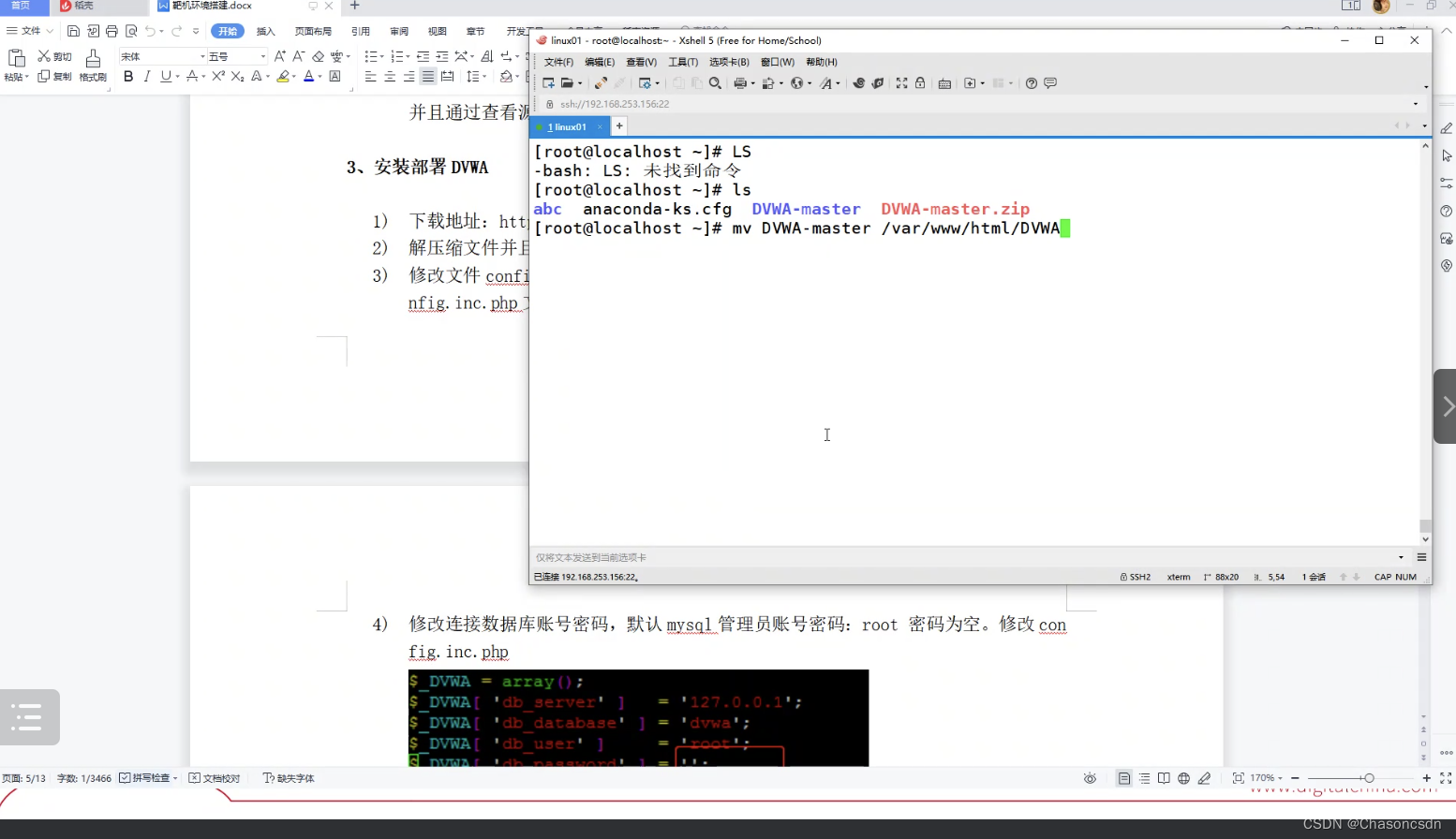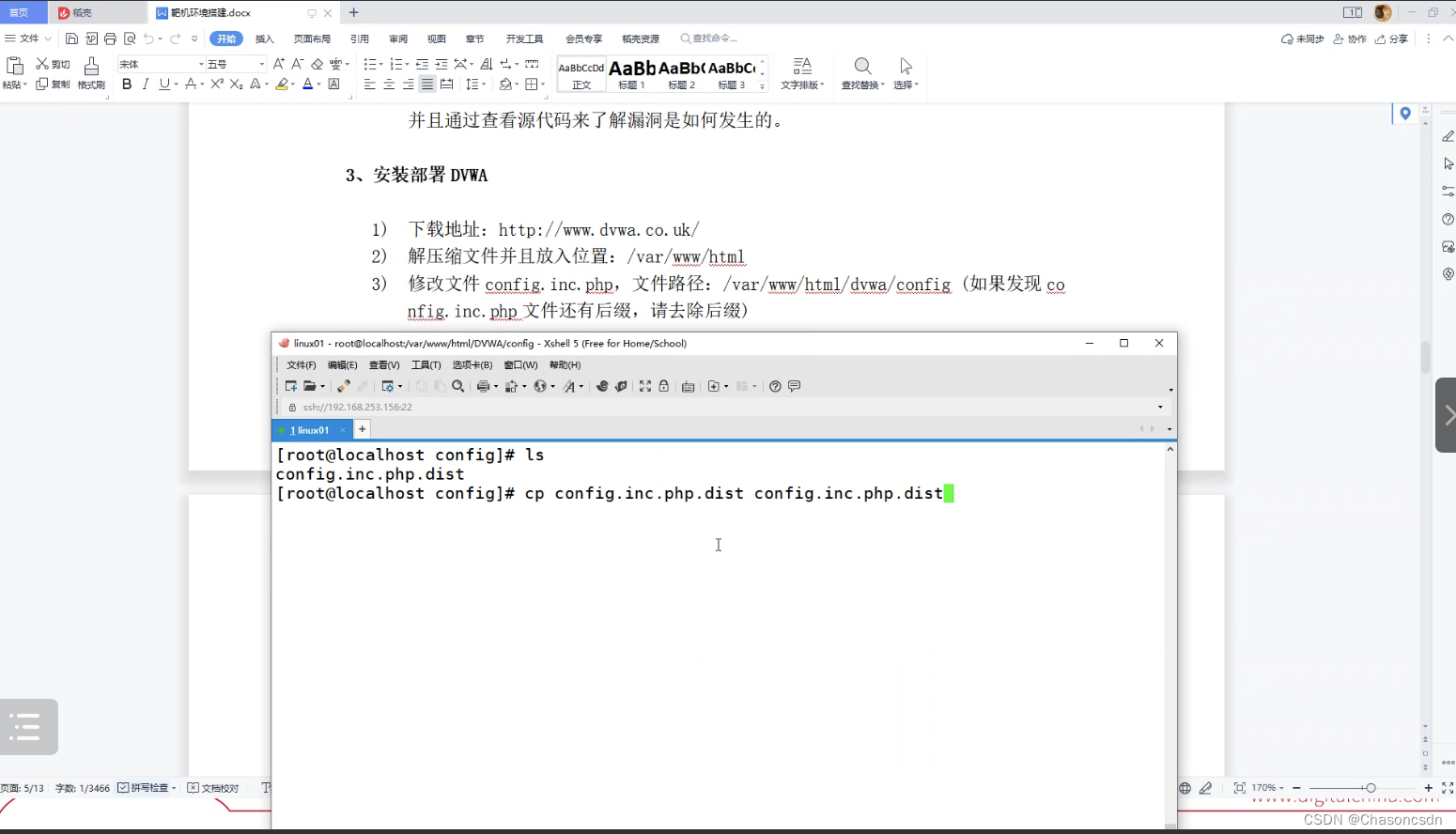 - 修改配置文件配置表单.php至指定路径:/var/www/html/dvwa/config (若发现配置表单.php仍有后缀,请删除后缀)