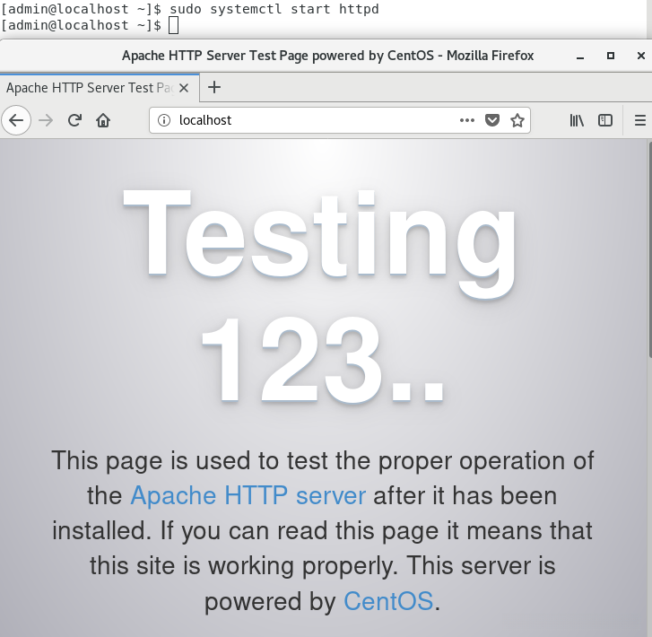 启动 Apache 服务:执行命令 sudo systemctl start httpd。通过浏览器访问本地地址 localhost 并查看下图页面以确认服务已成功安装。