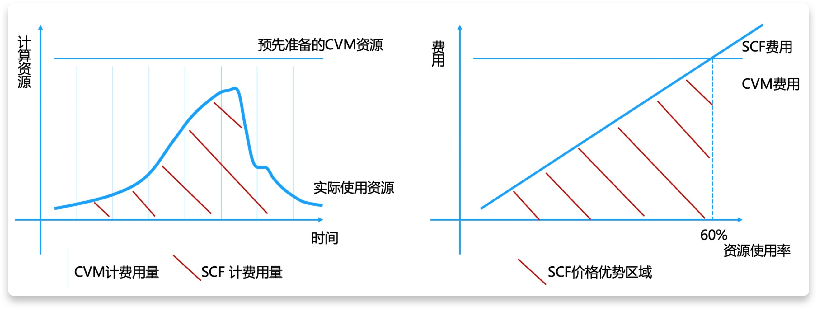 所有组件之间的交互均通过内部网络完成,在不产生额外的流量费用的情况下(无需额外流量费),采用每毫秒为单位按照实际使用量进行计费(1毫秒粒度按用量计费)的方式运营(拥有显著的成本优势)。