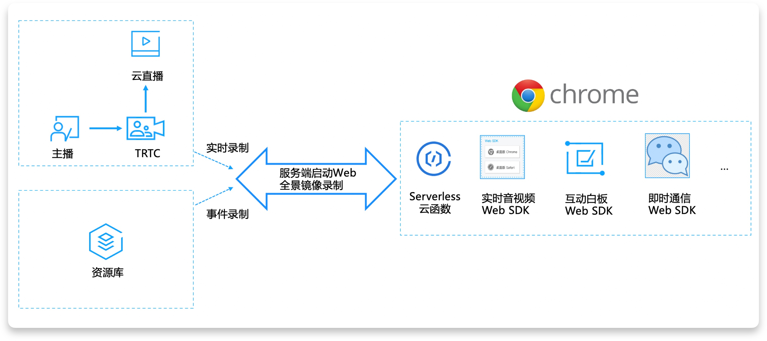 采用 Serverless 云服务与无框架 Chrome 浏览器实现实时渲染与录制的整合;