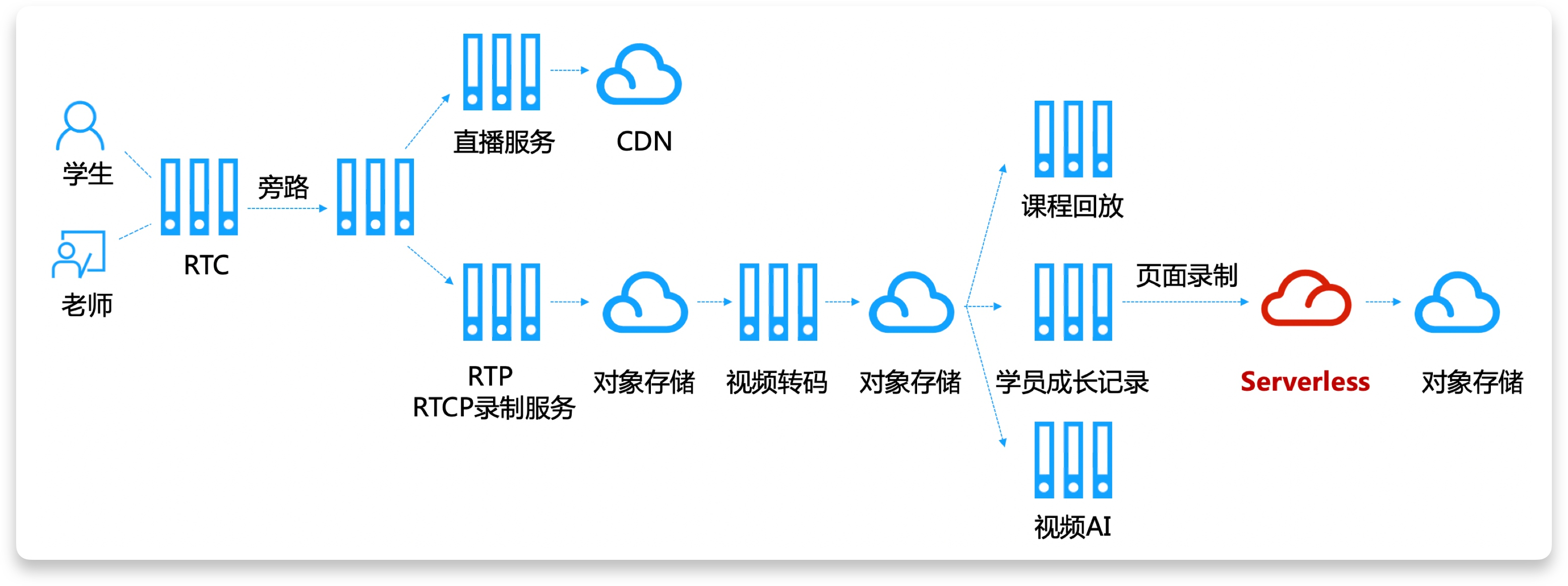 基于Serverless技术实现的音视频转码与分发方案提供多样化的编码策略选择,并支持多场景实时应用开发功能;该系统通过分布式架构设计具备极强的抗压能力,在任何负载下都能稳定运行;可实现RTC会议系统开发及互动白板功能模块的设计与集成,并能无缝衔接实时录制功能以满足多样化的产品组合需求;同时弥补传统单一云服务的技术缺陷并提升整体系统的可靠性和扩展性,在极端情况下也能保证平稳运行以应对大规模在线教育场景的需求