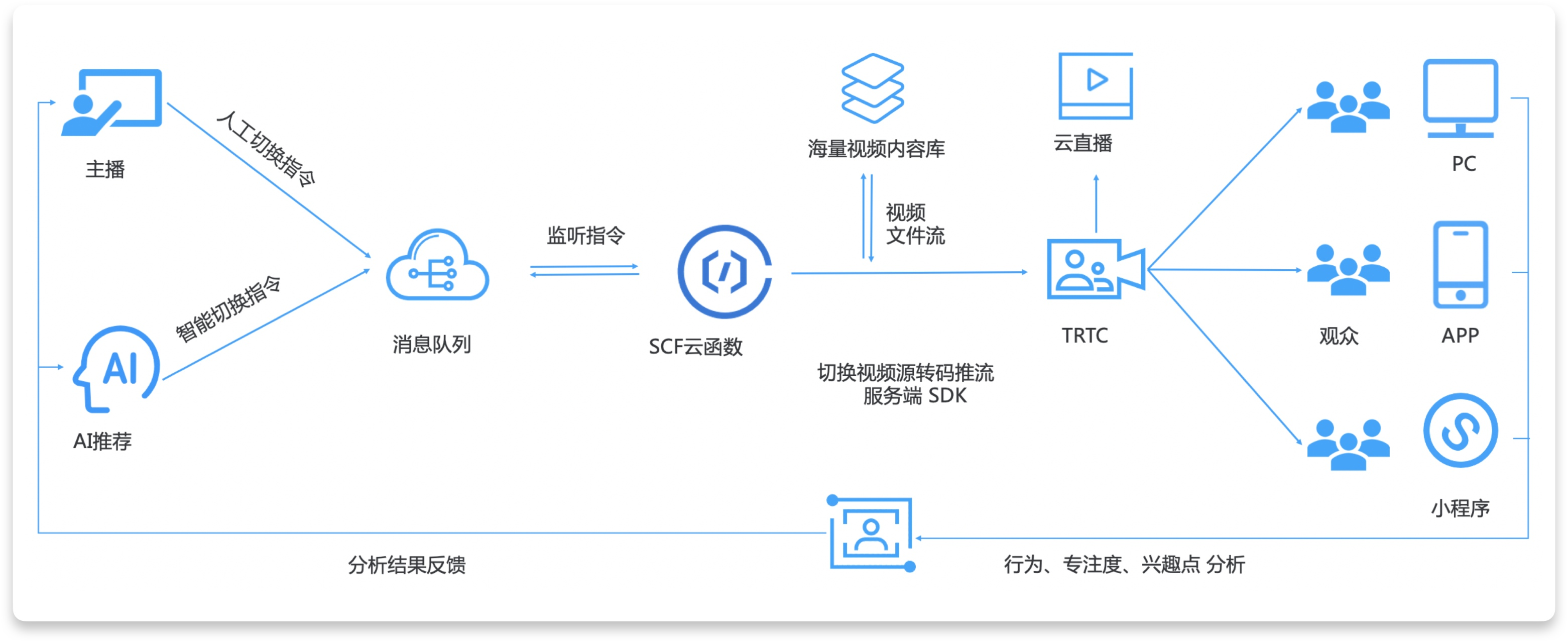 - 通过TRTC技术和云函数SCF进行内网推拉流协同工作以保证实时音视频传输质量的同时显著降低网络流量成本