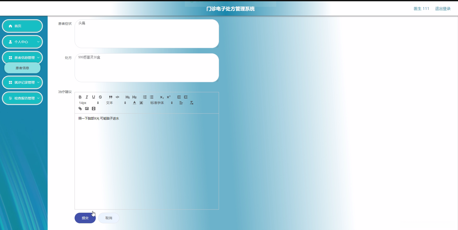 选题背景: 在科技持续进步与医疗信息化进程中,在线诊疗逐渐成为主流模式,在线问诊逐渐成为主流模式,在线问诊逐渐成为主流模式,在线问诊逐渐成为主流模式,在线问诊逐渐成为主流模式,在线问诊逐渐成为主流模式,在线问诊逐渐成为主流模式,在线问诊逐渐成为主流模式,在线问诊逐渐成为主流模式,在线问诊逐渐成为主流模式,在线问诊逐渐成为主流模式,在线问诊逐渐成为主流模式 在传统诊疗中占主导地位的现象正在逐步改变。 作为一项创新性的医疗信息化手段 门诊电子处方管理系统不仅整合了医生开方 药师配药以及患者的购药等环节的信息流 并实现了流程上的无缝衔接 还显著提升了医疗机构的服务水平与患者的用药安全性及可靠性