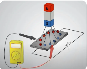 在导体中以与外磁场垂直的方向流动着电流时,在既不与电流方向也不与磁场方向重合的方向上会出现额外的电场,在导体两端就会形成一定的电压差值这一物理现象即为霍尔效应其产生的电压也被称作霍尔电压或霍耳势差