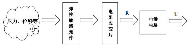 当被测量的对象施加于弹性元件时(如弹簧这类材料),其变形将导致敏感元件的电阻值发生变化(如热电偶或应变片)。通过相应的转换电路将此电阻变化信号成功地转化为可测量的电信号输出(如电流或电压),而输出信号幅值则直接反映了被测量对象的变化程度(如位移、力或温度)。