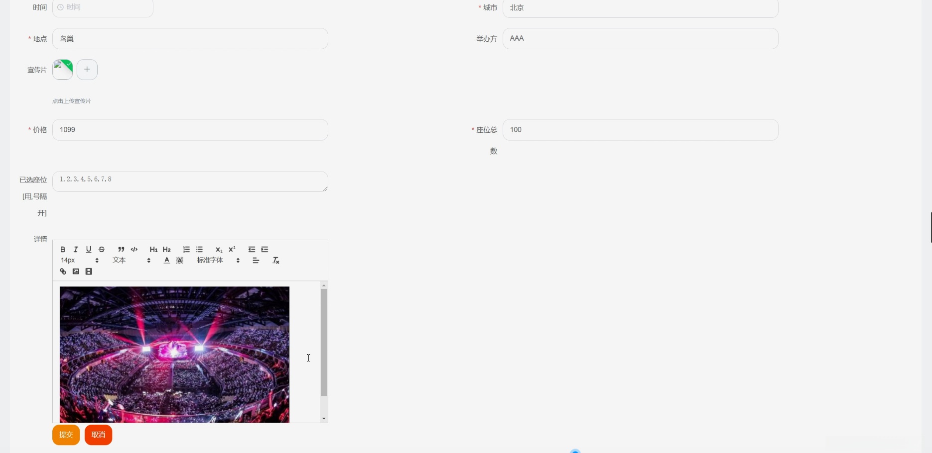 - 演唱会信息展示与管理模块:该系统需具备完整的演唱会信息展示与管理功能,并支持多媒体资源(如图片/视频)的在线呈现。