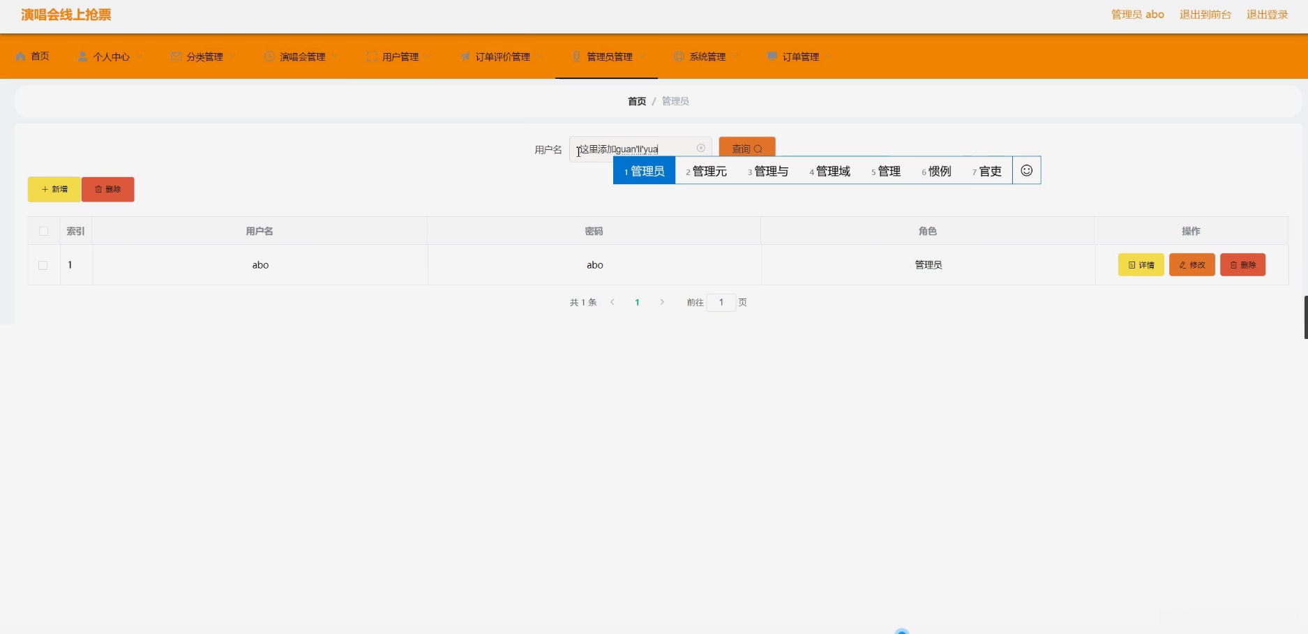 - 分类功能模块:该系统需要设置演唱会分类功能模块,并根据演唱会类型(流行/摇滚/古典等)、地区以及时间等因素实现智能分类管理功能。