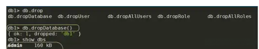 下面,我们使用db.dropDatabase() 删除当前数据库 db1。