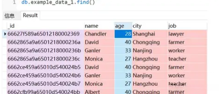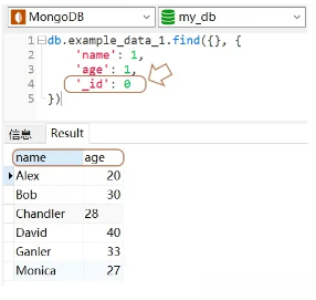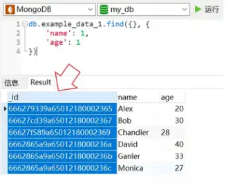 下面,我们来查询example_data_1 中的所有记录,但仅返回 name 和 age 字段。