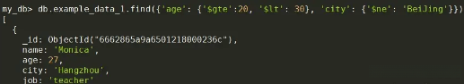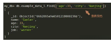 、比如,下面的语句返回集合中年龄等于33 并且城市为 Nanjing 的记录。