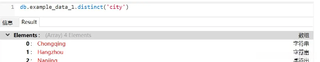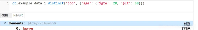 distinct 是一种集合类别的函数,在实际操作中可以直接作用于集合对象获取所需数据。其返回结果是一个数组,并且包含的是经过去重后的数据值。接下来我们将指定第二个参数,在特定条件下对 job 字段的数据进行去重处理