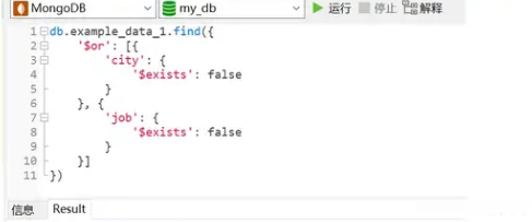 下面让我们来看一下这个示例:我们将集合中没有指定的 city 和 job 字段的记录进行处理,并且将 city 全部更改为 Beijing ,同时将 job 全部更改为 programmer 。
