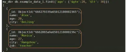db.集合名称.find({字段1: {操作符1: 边界1, 操作符2: 边界2, ...}, 字段2: ...})