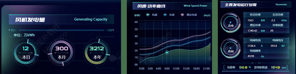 我们还设计了炫酷的一站式风机数据可视化展示平台,自由部署实时数据,项目运行状态和健康状态尽收眼底。