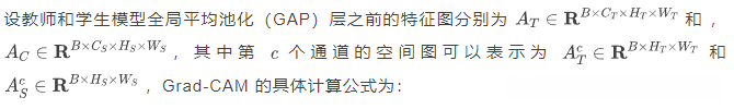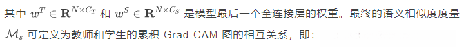 语义相似度度量 。受 [3] 的结论启发,KD 范式中教师网络往往具有更大的感受野和更丰富的语义特征,语义信息上的差距会阻碍知识的有效传递。反过来讲,最优的学生模型应该与教师的语义信息差距尽可能小 。与此同时,[4] 的研究结论表明随机初始化的模型也具备一定的语义定位能力,因此本文采用 Gram-CAM [5] 生成的定位热图来反映度量语义信息。