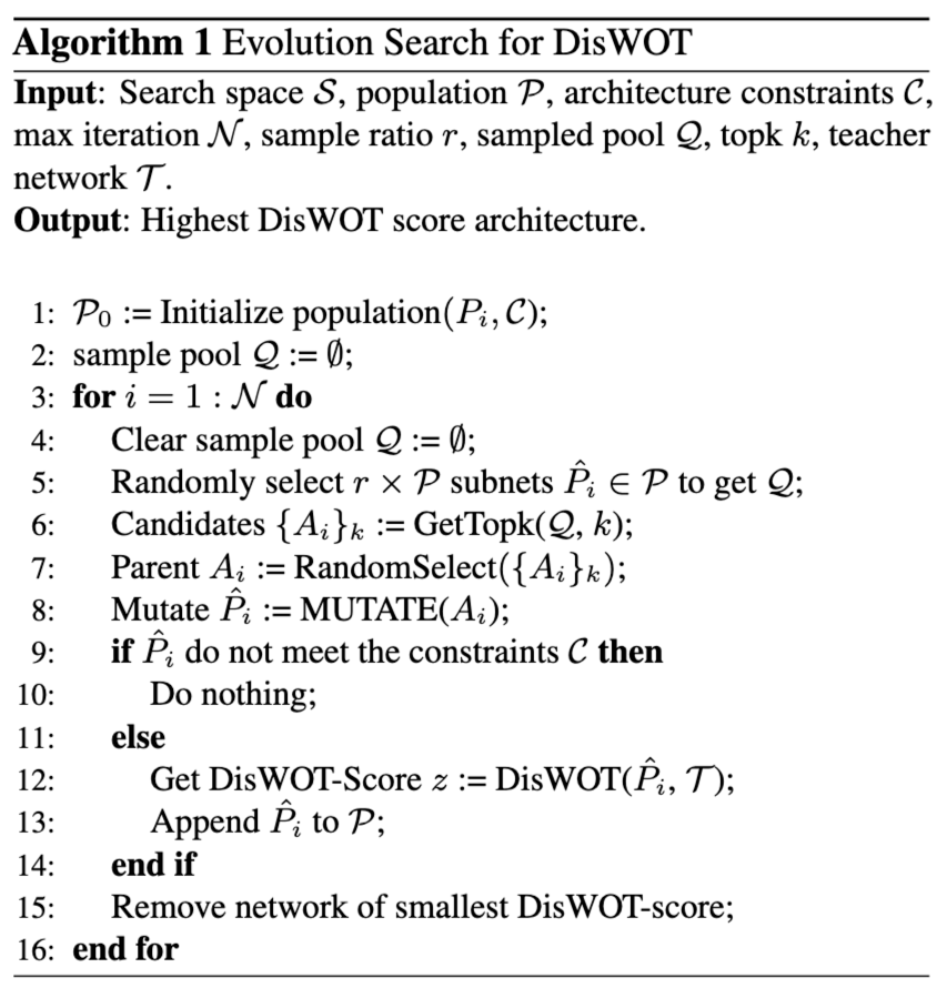 ▲ 图2. 基于 DisWOT 的进化搜索算法伪代码