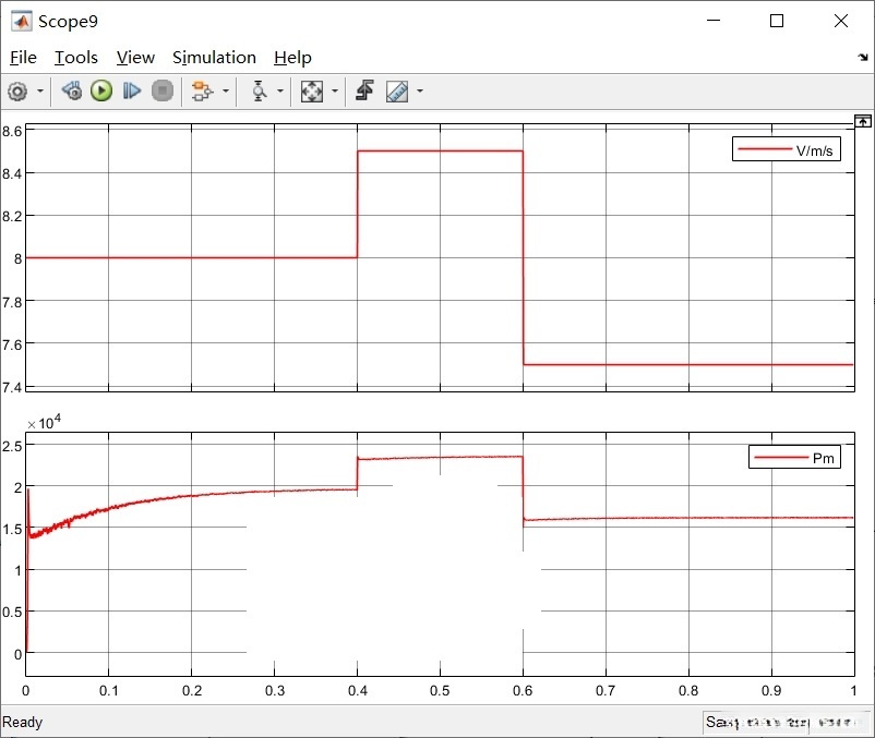 风机采用最佳叶尖速比实现MPPT控制,风力发电系统中PMSG采用零D轴控制实现功率输出,通过三相电压型PWM变换器整流并入母线。最佳叶尖速比指的是在一定的转速范围内,使得风机输出的功率最大的叶尖速比。零D轴控制可以有效地控制PMSG的输出功率和转速,从而实现风力发电的最大化利用。