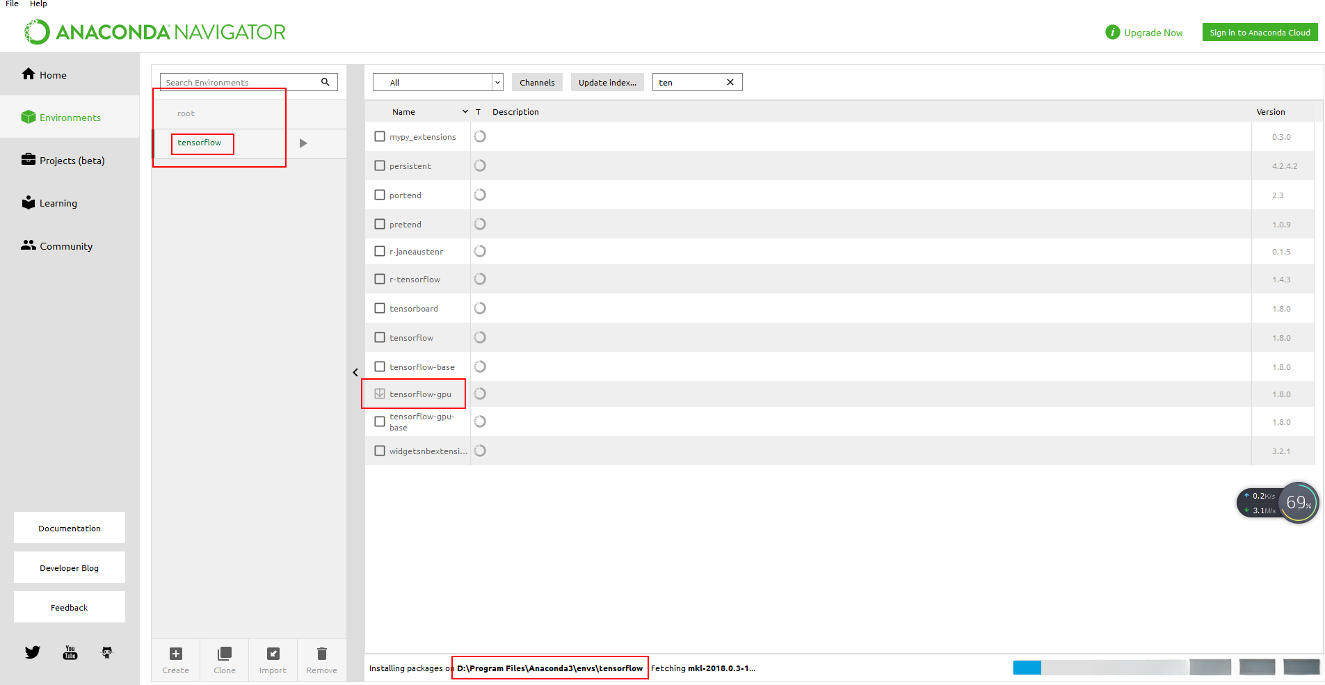 所以后来我把navigator里面的tensorflow给卸载了,用如下命令来安装的。