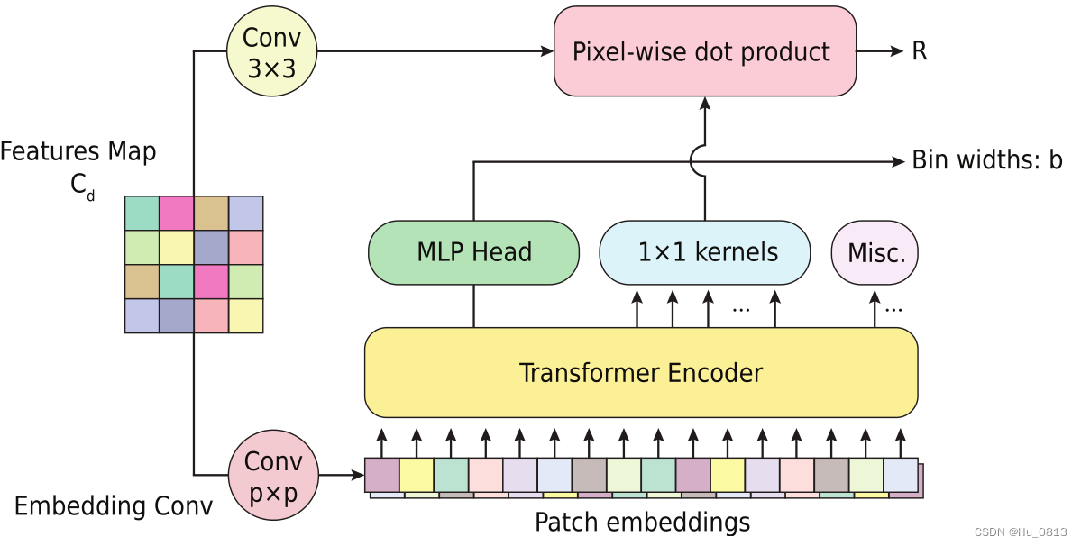 在Vision Transformer(ViT)模型中,MLP生成分类标签,在我的论文提出的模型中,同样生成深度信息 bin