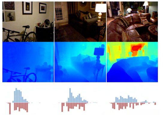这是论文中所展示的真实深度分布图和预测生成的深度分布图。若两个图像在深度分布特征上趋于一致,则系统损失已降至相对稳定水平。
