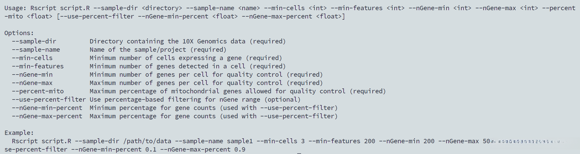二是通过百分比对基因数量进行筛选。当选择了--use-percent-filter选项时,请指定两个参数:--nGene-min-low和--nGene-max-high(具体名称需根据实际需求确定)。这些参数用于确定每个样本群体中基因数量的具体范围,并据此动态调节筛选标准。例如设置--nGene-min-low为0.1时,则筛选出所有位于最低十分之一分位数范围内的样本群体。