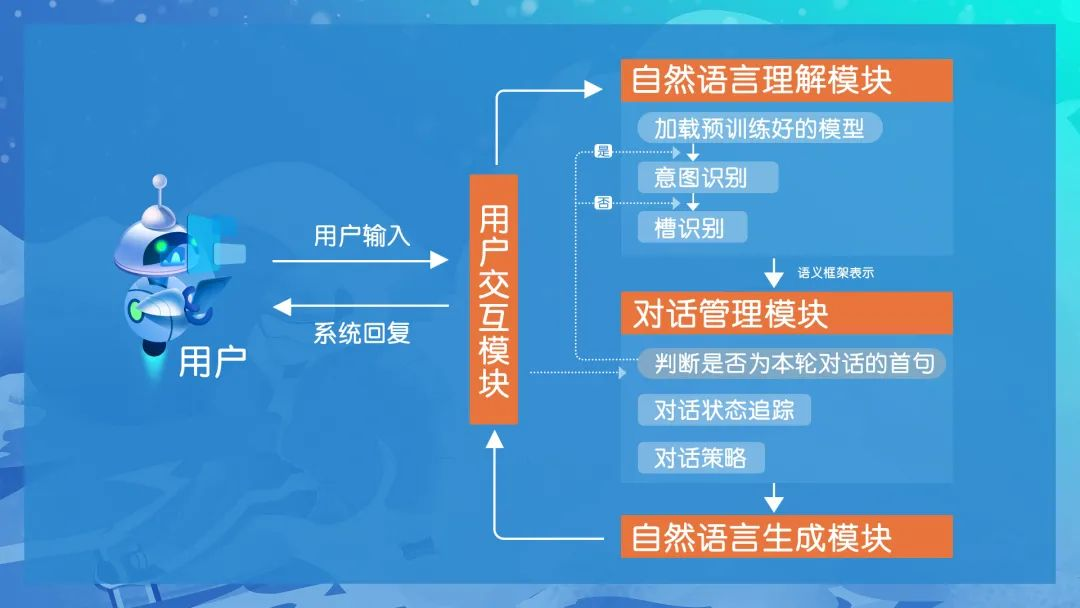 在冬奥使用的智能客服机器人系统中,对话系统属于任务型对话,具有领域范围小、主题明确等特点,它的功能主要由自然语言处理(NLP)之下的自然语言理解(NLU)决定。