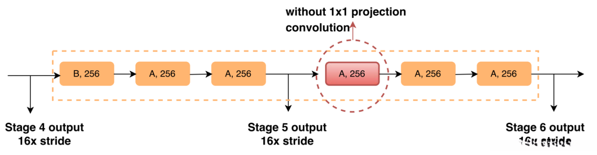 3、扩大的卷积仍然很耗时,DetNet的阶段5和6与阶段4相同通道(256个通道),传统的网络结构会在后期实现双通道。