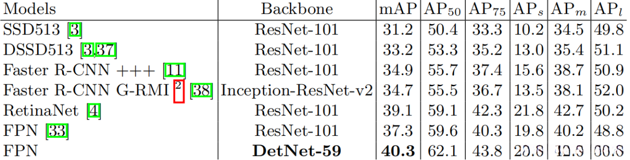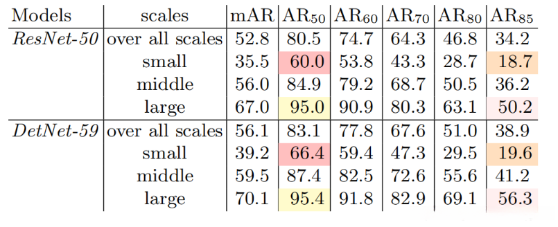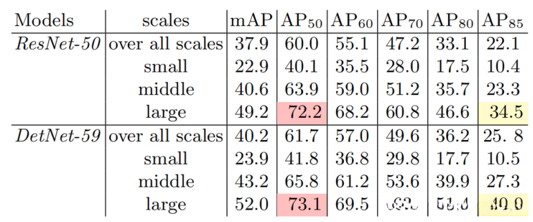 2、DetNet在大对象定位方面也更加优秀。
