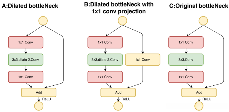 DetNet的单元结构如上图所示,可以看到与传统的ResNet块相比,增加了一个叫做dilate 2的结构,它的作用是: