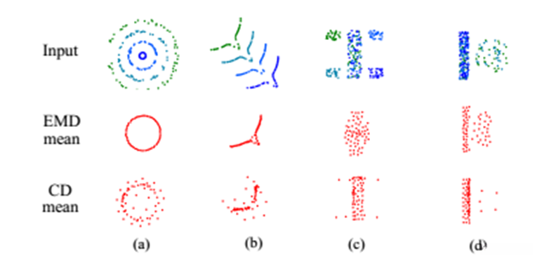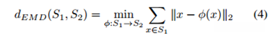 我们提出了两个候选参数:倒角距离(Chamfer distance, CD)和地球移动距离(Earth Mover’s distance, EMD)[17]。
