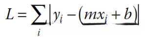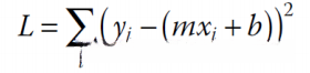 2. 第一种惩罚函数,使用残差平方和最小确定直线的位置。其中 yi是实际观测值,mxi+b 是对应的模型预测值,m 和 b 是模型的参数。 这个函数对于异常值非常敏感,因为它对每个观测值的差异都进行平方,并且较大的差异会被放大 。如下: