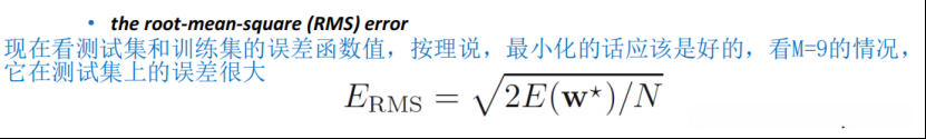 但是我们发现,最小化误差函数会产生过拟合,所以我们引出the root-mean-square (RMS) error,同时评估训练集和测试集来防止过拟合