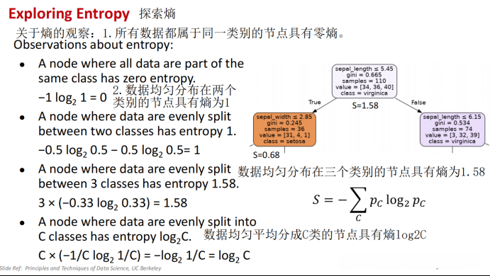 可以用节点熵来解决:用于衡量节点纯度或不纯度的指标之一,一个节点越“纯”,意味着它包含的样本越趋向于属于同一类别。只包含一种类型的节点被称为“纯”节点。 节点熵越高,表示节点内部样本的混杂度越大 ,不同类别的样本混合程度越高,纯度越低。在构建决策树时,我们的目标是 选择那些能够降低子节点熵(增加纯度)的特征和分割值 ,以便于更好地对样本进行分类。