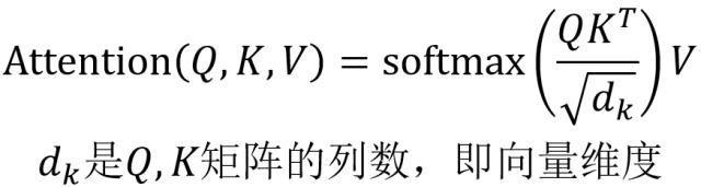 我们获得了矩阵 Q, K, V后就能计算出自注意力机制的输出了;计算的具体公式如下: