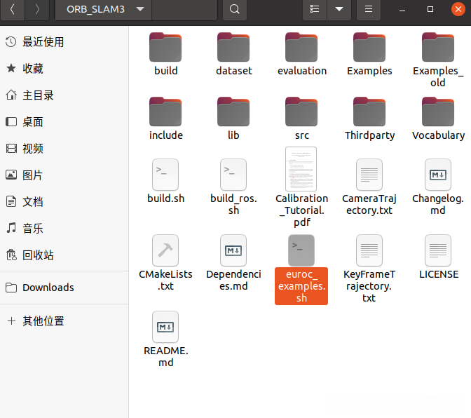 将这个版本的slam解压完成后,在他的example文件夹中查看euroc_examples.sh文件,并将其放置于根目录位置