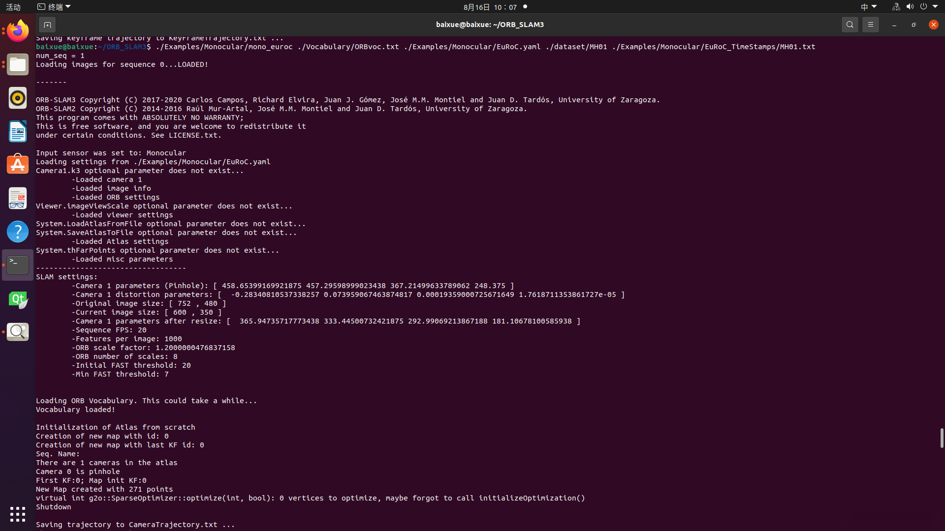 ./Examples/Monocular/mono_euroc ./Vocabulary/ORBvoc.txt ./Examples/Monocular/EuRoC.yaml ./dataset/MH01 ./Examples/Monocular/EuRoC_TimeStamps/MH01.txt