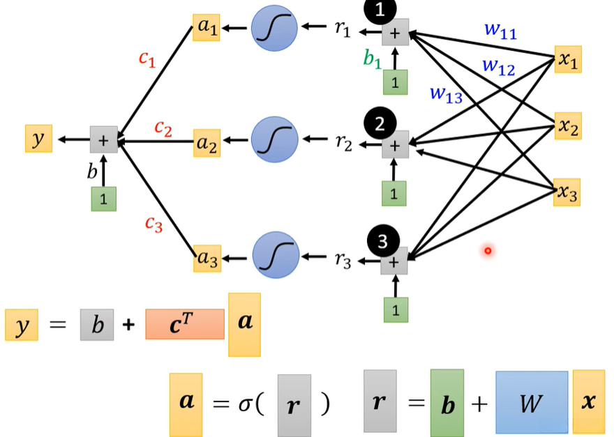 r经过sigmoid函数,然后再与c的转置相乘,再加b,最后得到y,总体过程如下图所示: